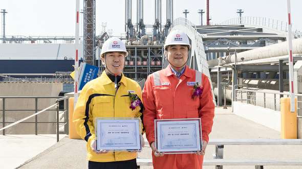mksports-mk(中国)一站式体育服务官方网站和国家管网天津接收站共同举行了mksports-mk(中国)一站式体育服务官方网站首船LNG接卸和首车发车仪式。国家管网天津接收站总经理张林松和mksports-mk(中国)一站式体育服务官方网站智能贸易及输配业务群副总经理尹明分别代表双方互换纪念铭牌。